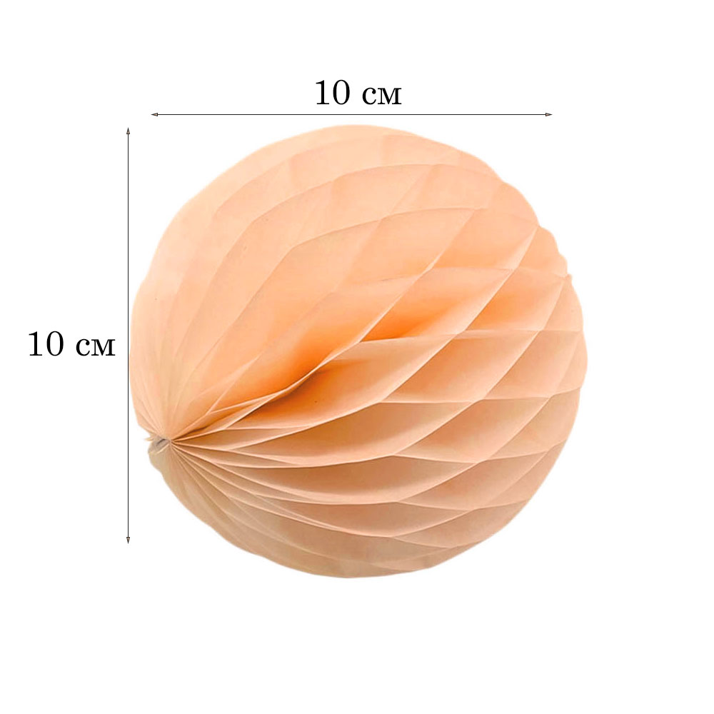 Бумажное украшение шар 10 см, персиковый