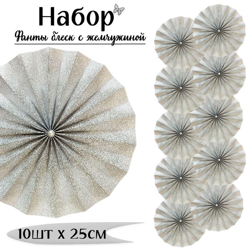 Фанты блеск с жемчужиной НАБОР 10шт х 25см, серебро