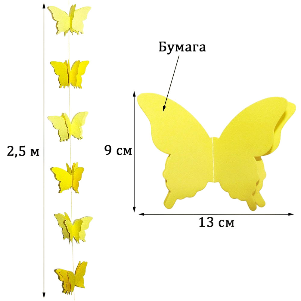 Гирлянда "Бабочки" 13х9см 2,5м, желтый+св.желтый