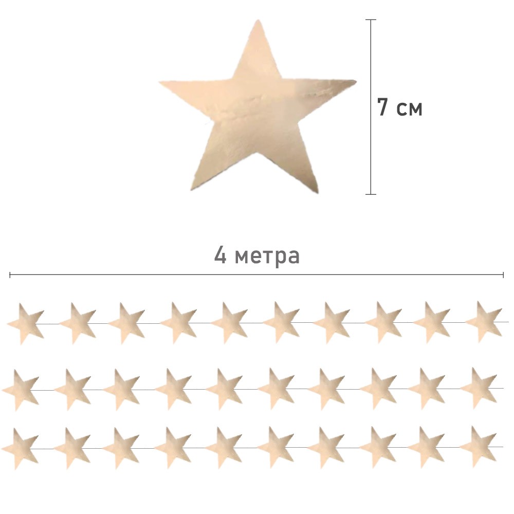 Гирлянда Звезды металлик 7 см 4 м золото