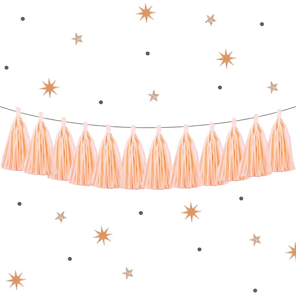 Гирлянда тассел 12 кисточек по 10 листов, персиковый
