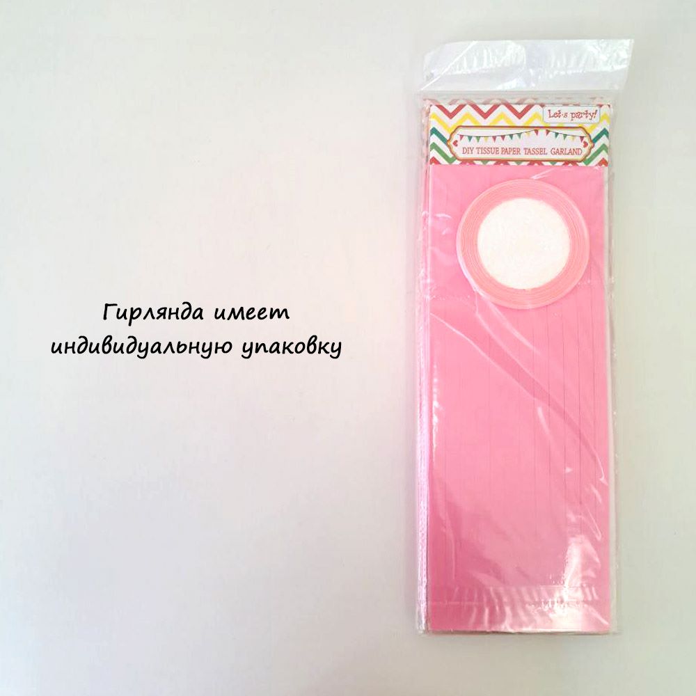Гирлянда тассел 12 кисточек по 5 листов, розовый