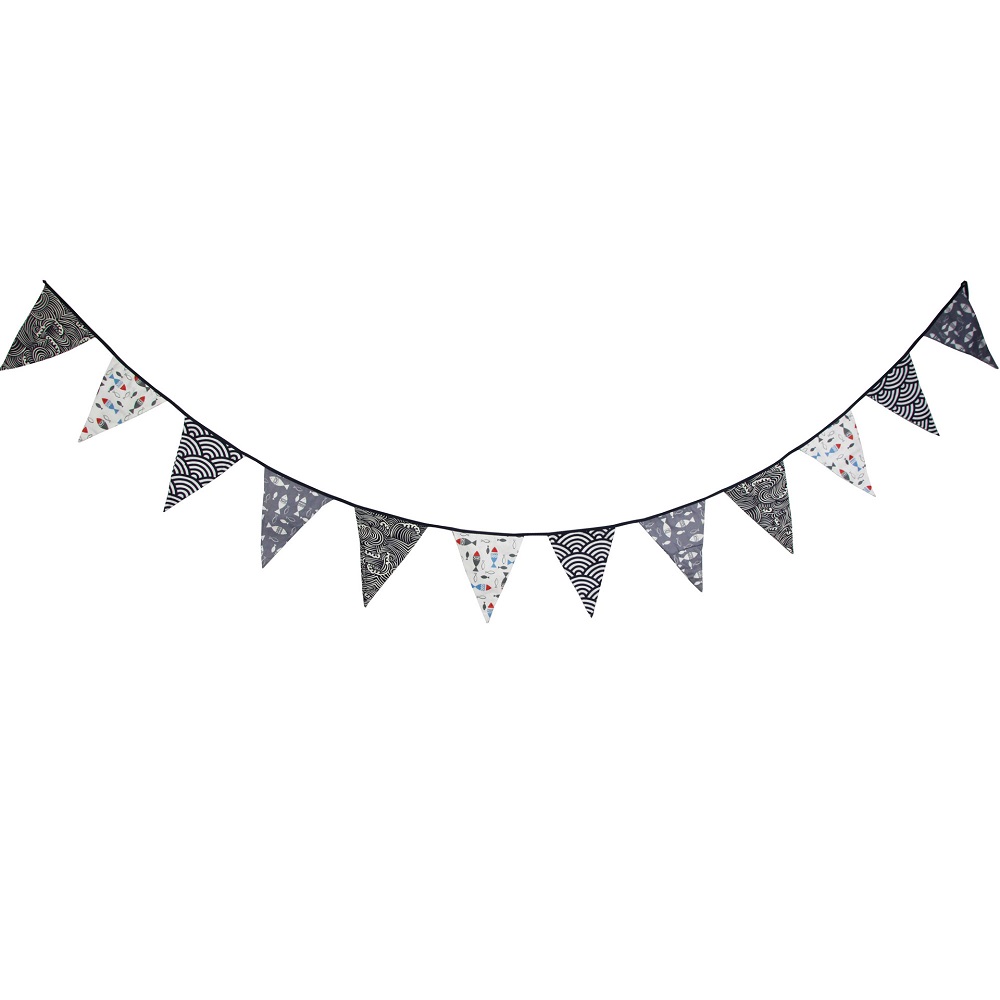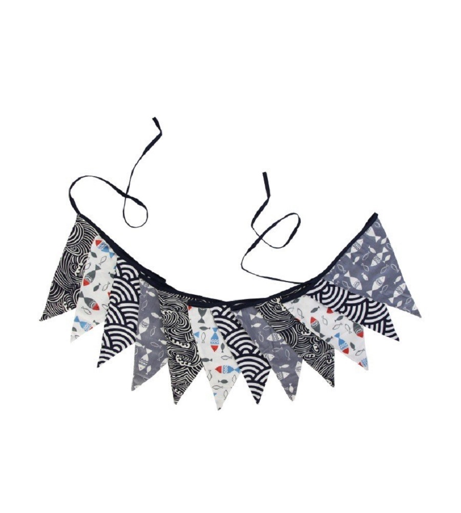 Гирлянда состоит из 12 флажков. Расстояние между флажками - 6 см, общая длина составляет 4 м.