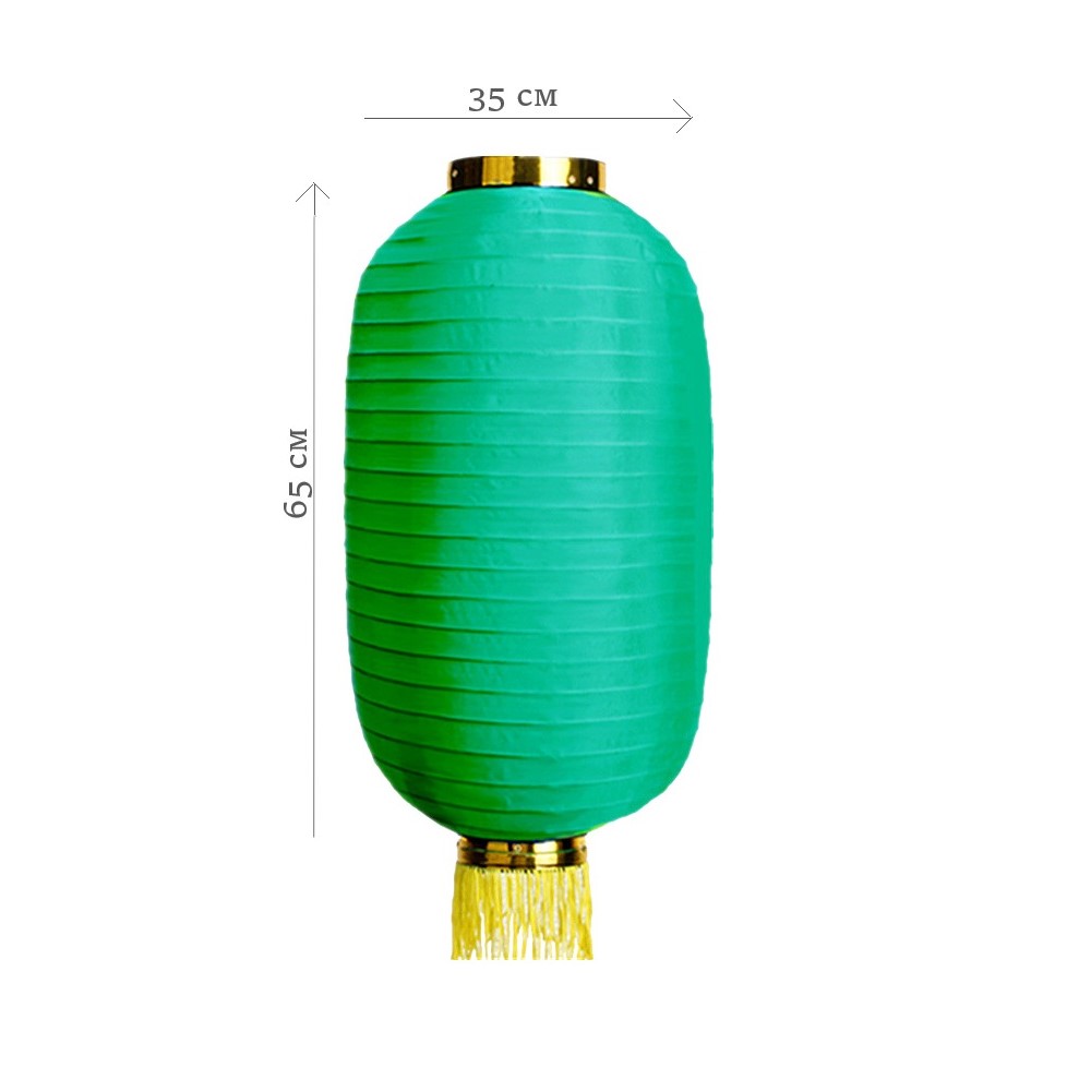 Китайский фонарь Цилиндр с бахромой 35х65 см, зеленый