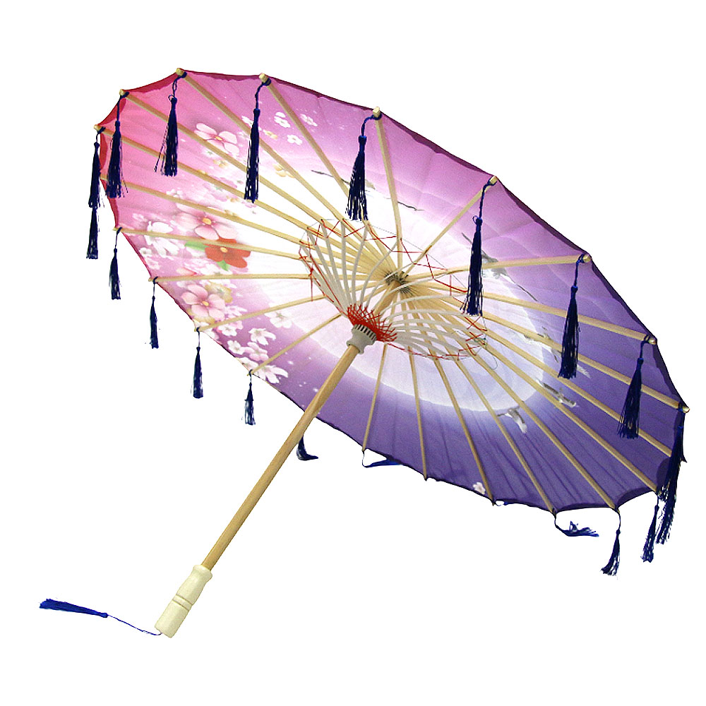 Китайский тканевый зонтик цветочный с кисточками 82х54см, №4