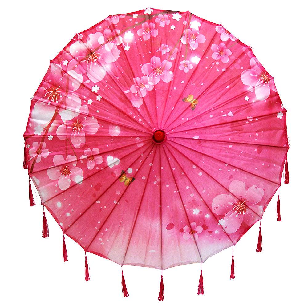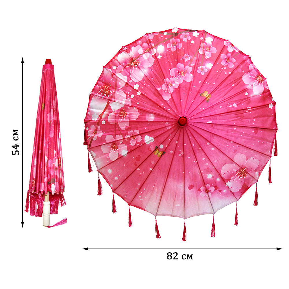 Китайские тканевые зонтики цветочные с кисточками 82х54 см