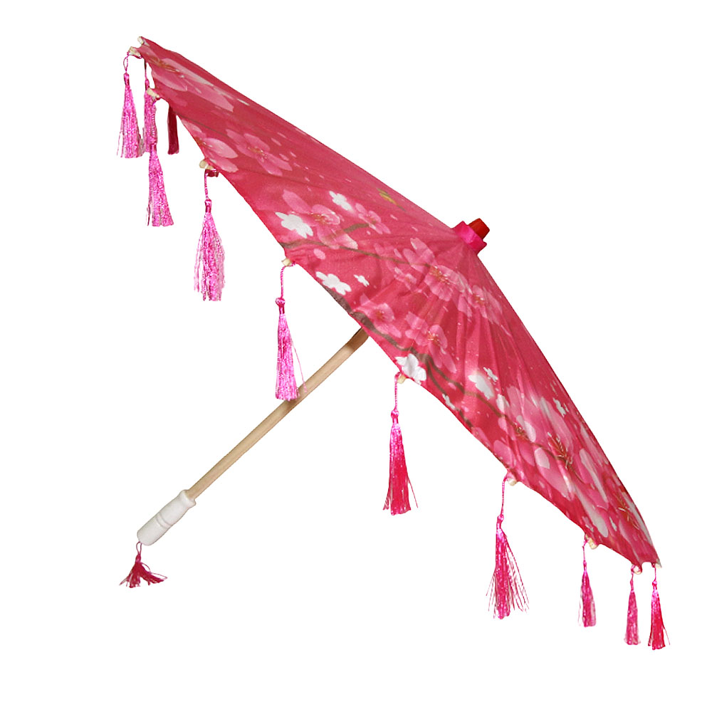 Китайский тканевый зонтик цветочный с кисточками 82х54см, №5