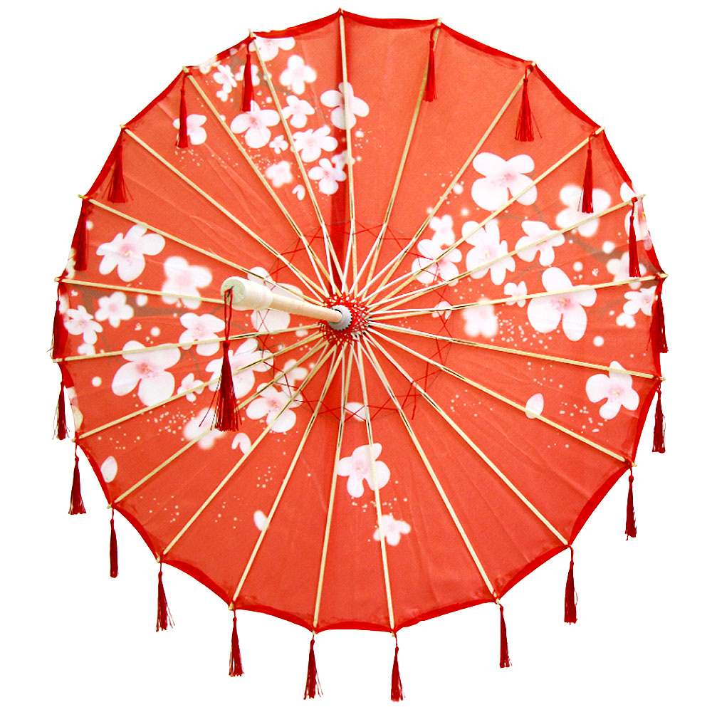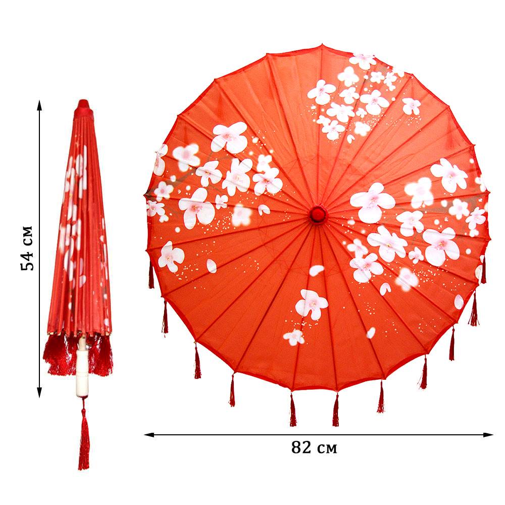 Китайские тканевые зонтики цветочные с кисточками 82х54 см