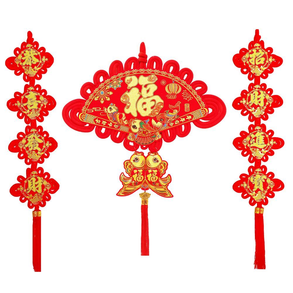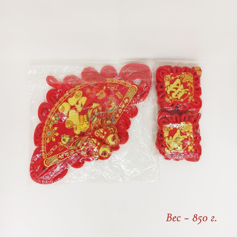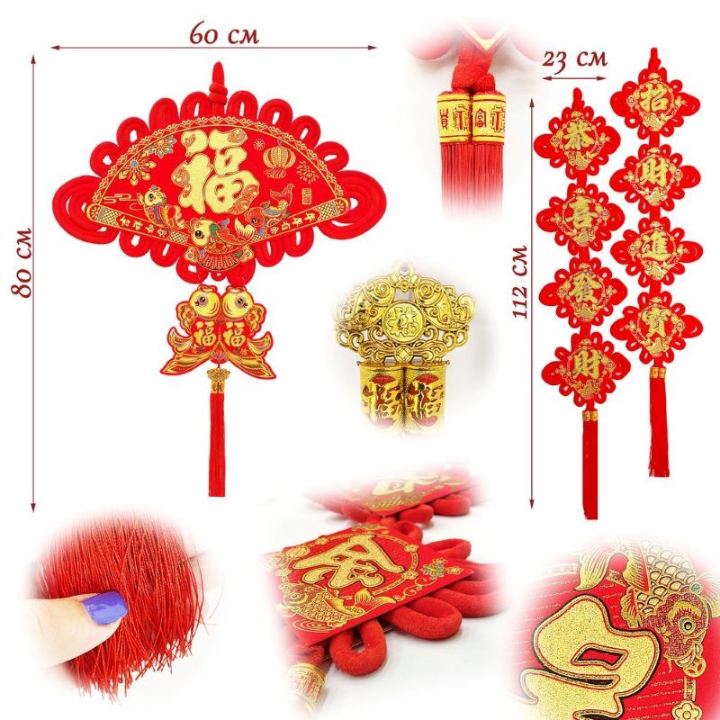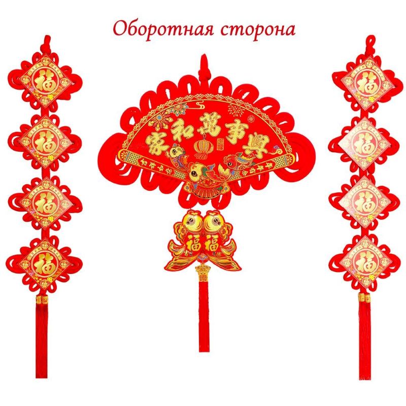 Китайский узел веер золото НАБОР 2шт (60х80см + 23х112см) рыбки, Богатство