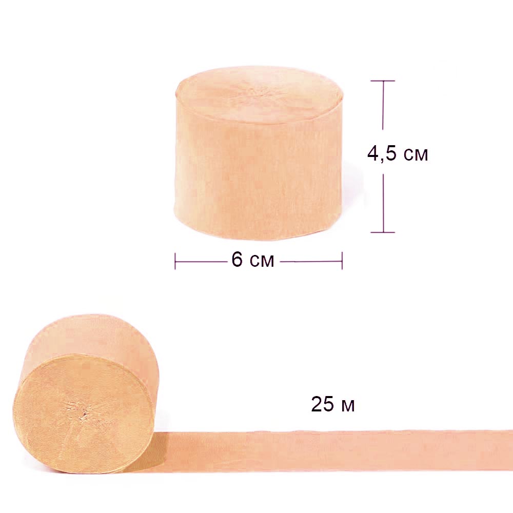 Крепированная лента 4,5 см х 25 м, персиковый