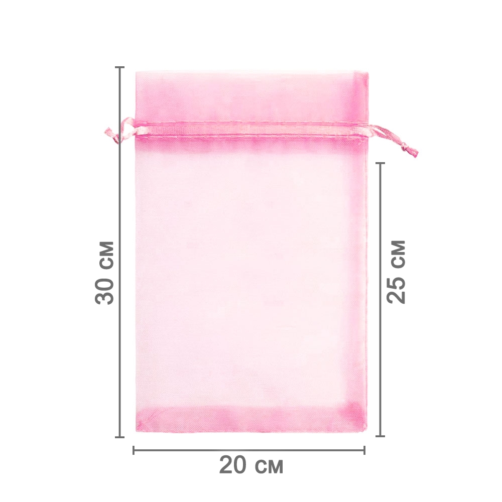 Мешочек из органзы 20 х 30 см — стильный аксессуар для упаковки средних и крупных предметов. Полупрозрачная ткань подчёркивает содержимое и придаёт аккуратный вид.