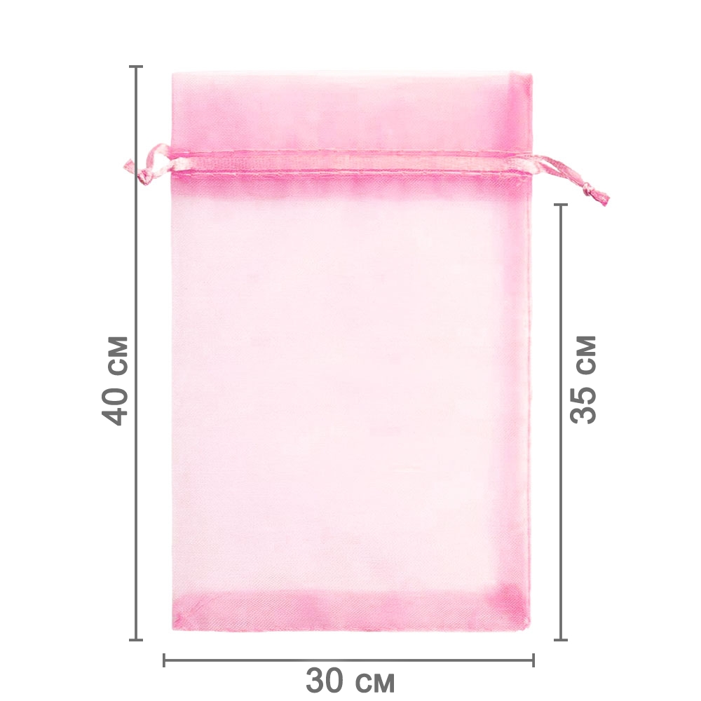 Мешочек из органзы 30 х 40 см — практичный аксессуар для упаковки крупных подарков и хранения предметов. Полупрозрачная ткань подчёркивает содержимое и придаёт праздничный вид.