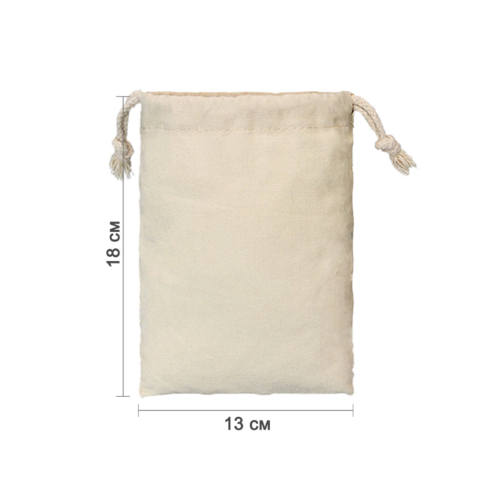 Мешочек из хлопка 13×18 см — универсальная упаковка для подарков, хранения и творчества. Натуральный хлопковый материал приятен на ощупь и подходит для украшений, сувениров, косметики, сладостей и других мелочей. Лаконичный дизайн делает мешочек удобным решением как для подарочной упаковки, так и для повседневного использования.