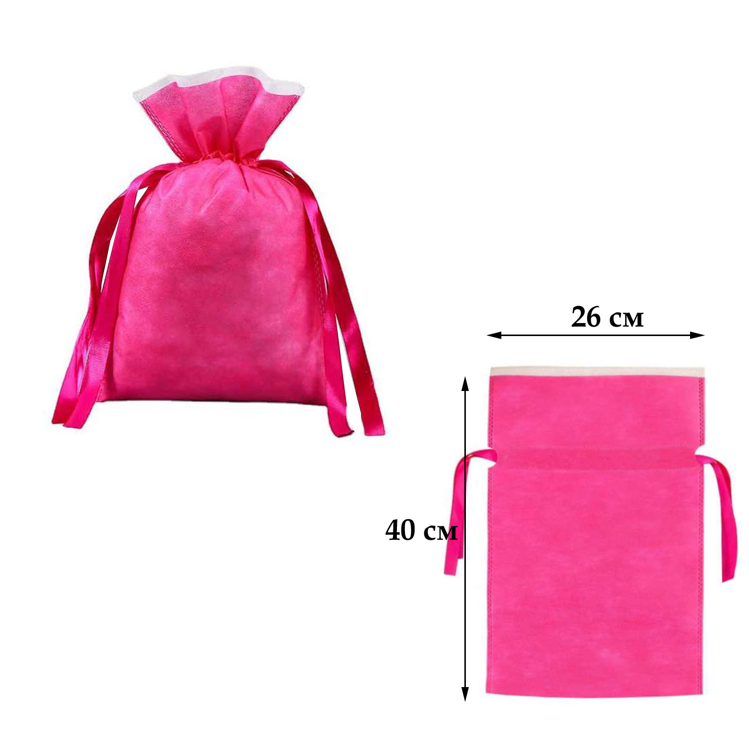 Мешочек из спанбонда, размером 40х26см, с ленточками, подходит для многоразового использования. Плотность материала: 55 г/м².