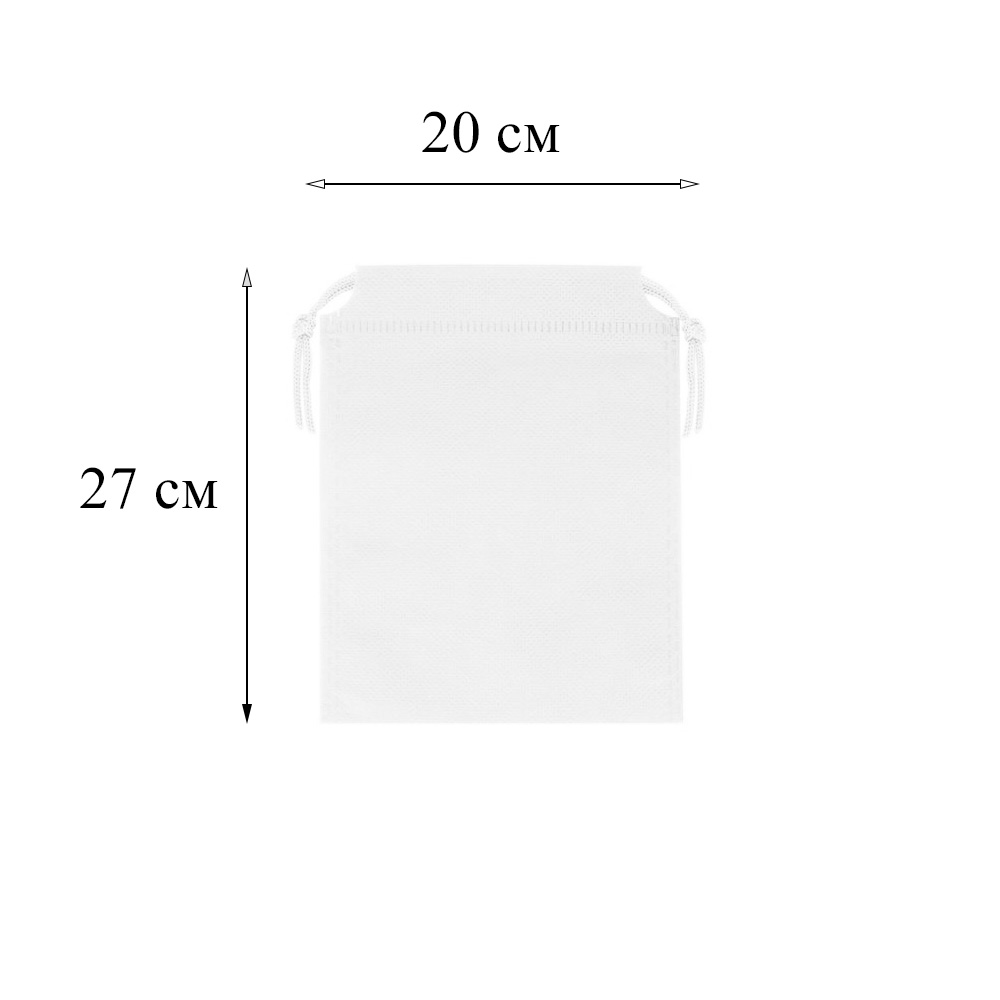 Мешочек из спанбонда, размеры 27х20см, со шнурками, подходит для многоразового использования. Плотность материала: 55 г/м².