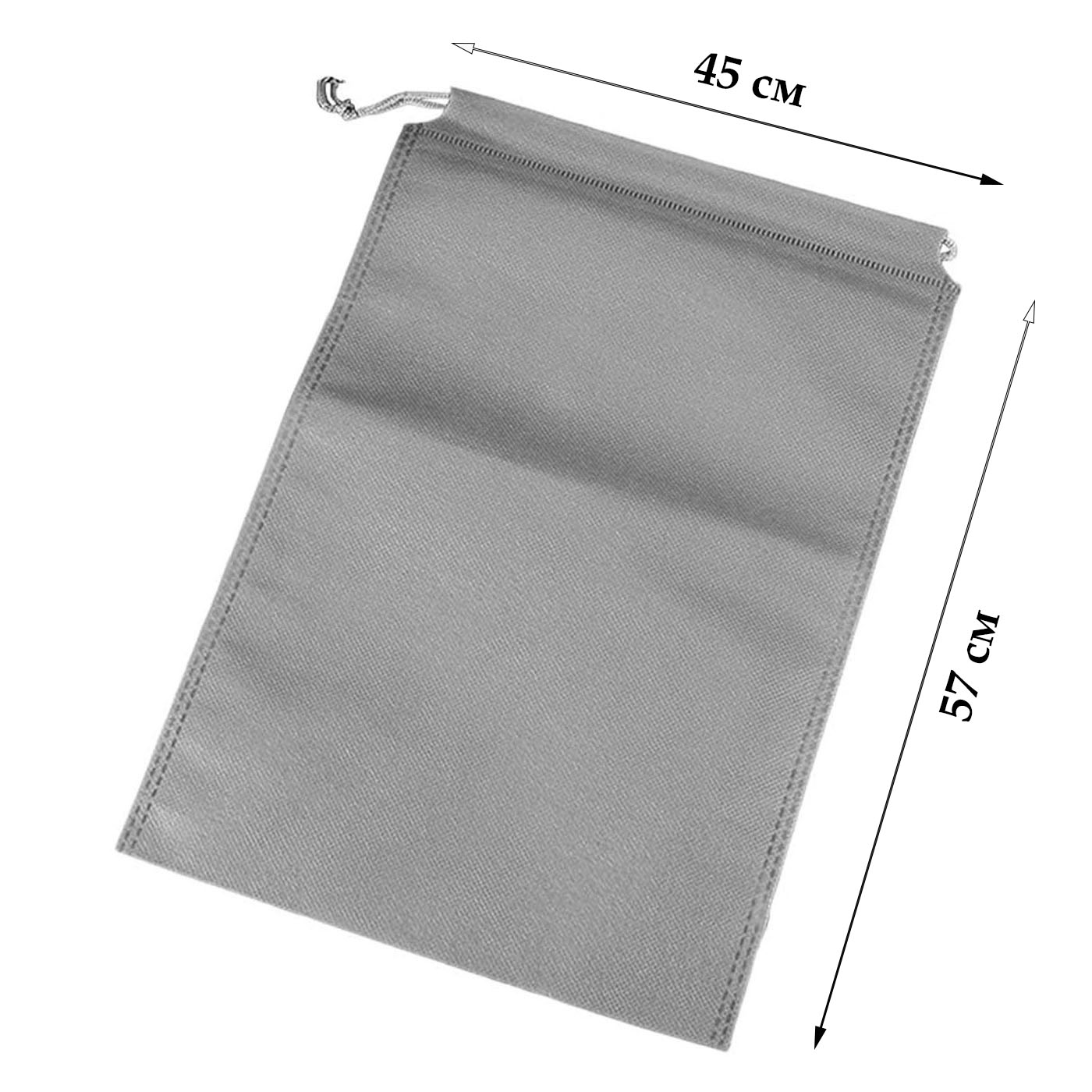 Мешочек из спанбонда, размеры 57х45 см, со шнурками, подходит для многоразового использования. Плотность материала: 55 г/м².