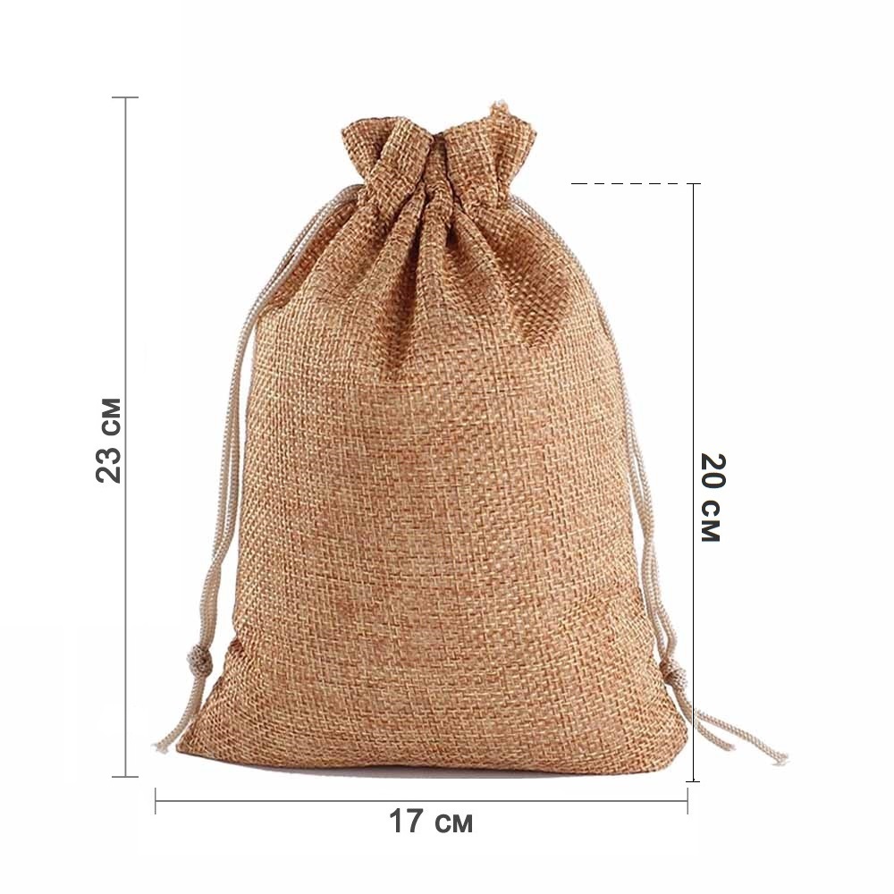 Удобный и практичный мешочек для подарков и хранения различных вещей. Приятная текстура мешковины придаёт изделию аккуратный и привлекательный вид, а шнурок-затяжка надёжно удерживает содержимое.