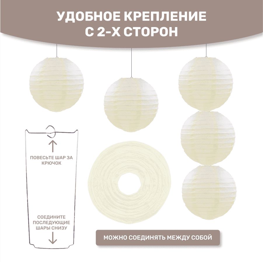 Комплект подвесные фонарики 30 см х 8 шт, айвори