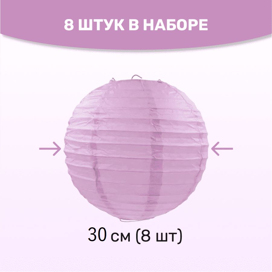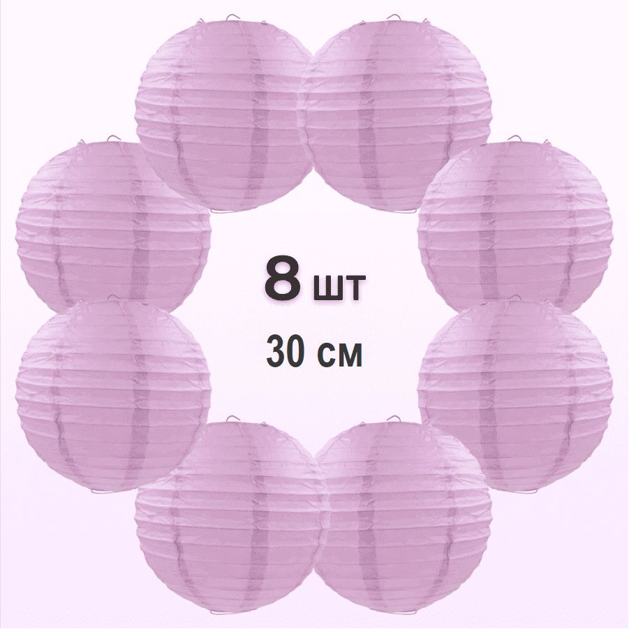 Комплект подвесные фонарики 30 см х 8 шт, светло-сиреневый