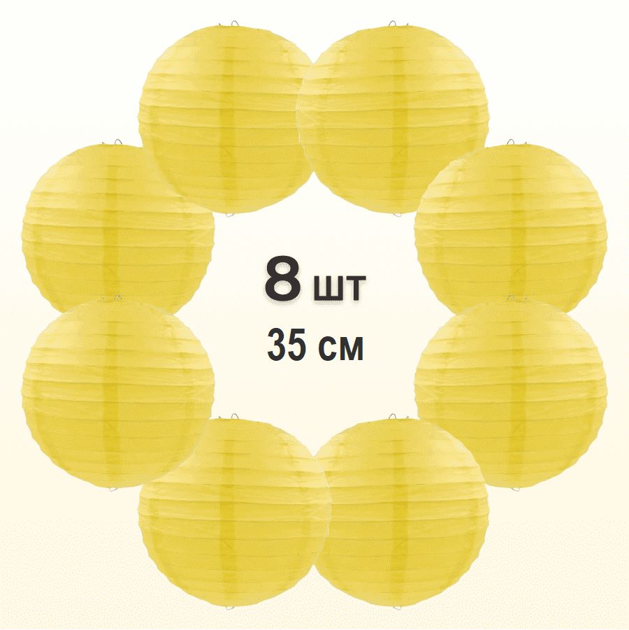 Комплект подвесные фонарики 35 см х 8 шт, желтый