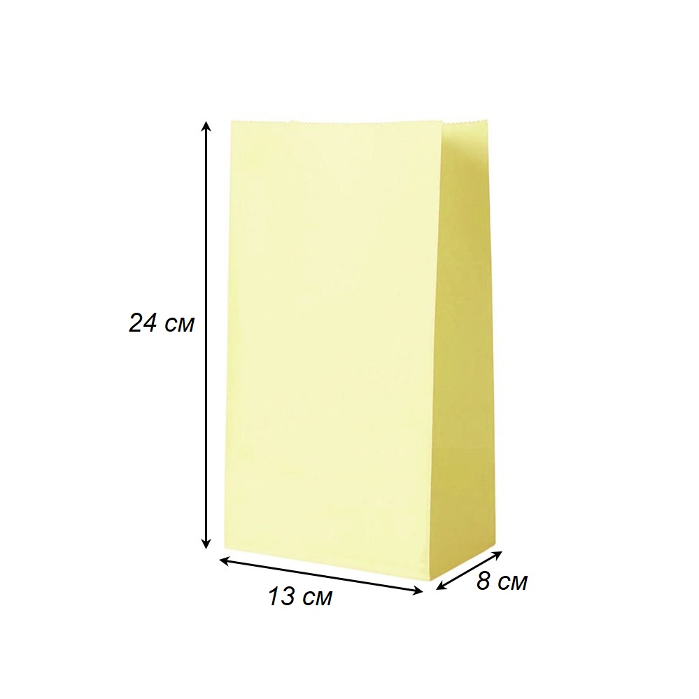 Подарочный пакет из крафтовой бумаги пастельного оттенка с белыми бумажными ручками и белой внутренней стороной.