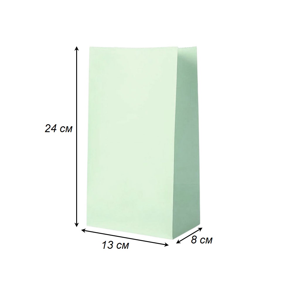 Подарочный пакет из крафтовой бумаги пастельного оттенка с белыми бумажными ручками и белой внутренней стороной.