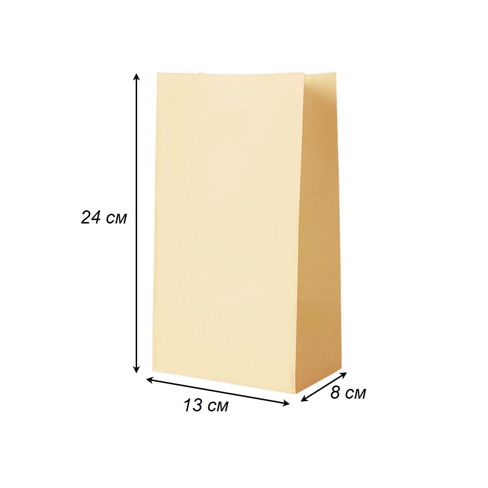 Подарочный пакет из крафтовой бумаги пастельного тона, внутренняя сторона белая.