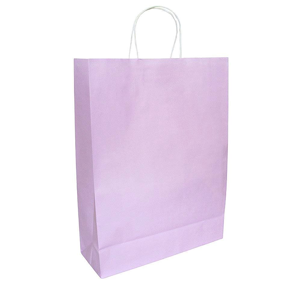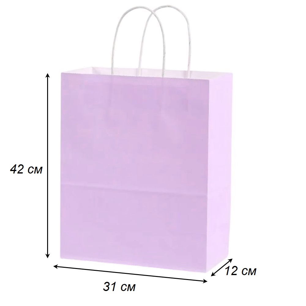 Подарочный пакет из крафтовой бумаги пастельного оттенка с белыми бумажными ручками и белой внутренней стороной.