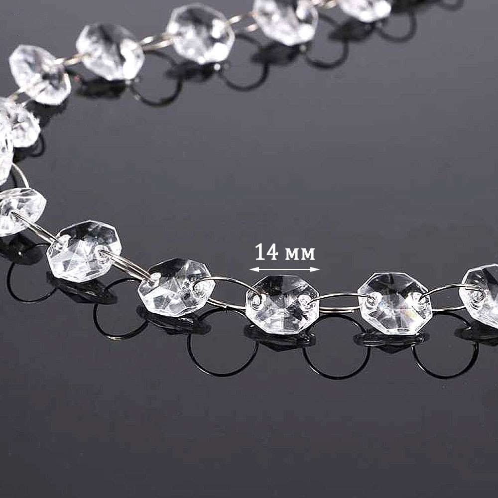 Стеклянные бусины граненые на кольцах «Пластинка», 14 мм х 100 см