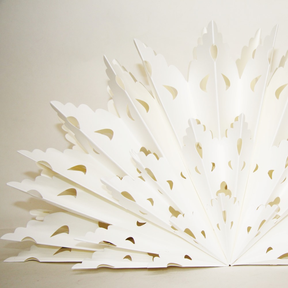 Снежинка на липучках размером 60 см, белого цвета, изготовлена из высококачественной бумаги.