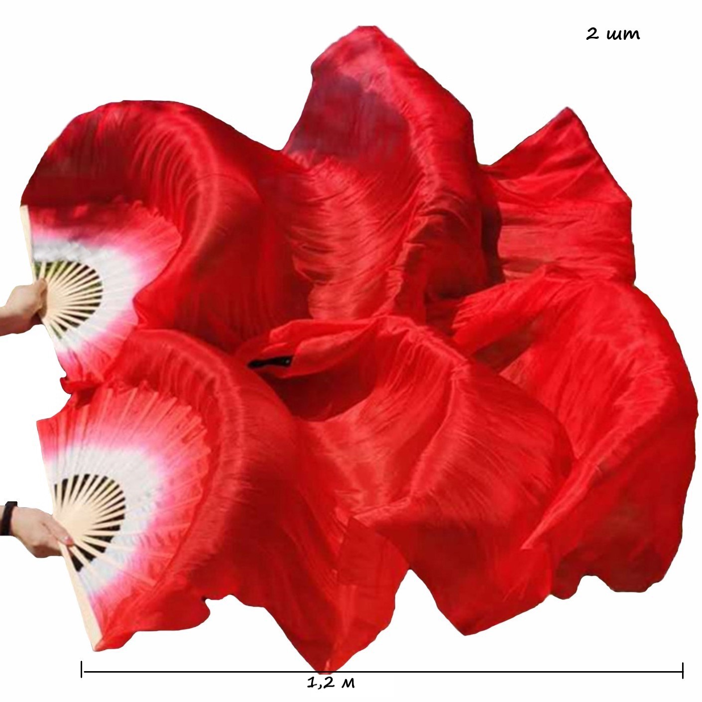 Веер-вейл для танцев 2 шт 57см х 1,2м №3, красный