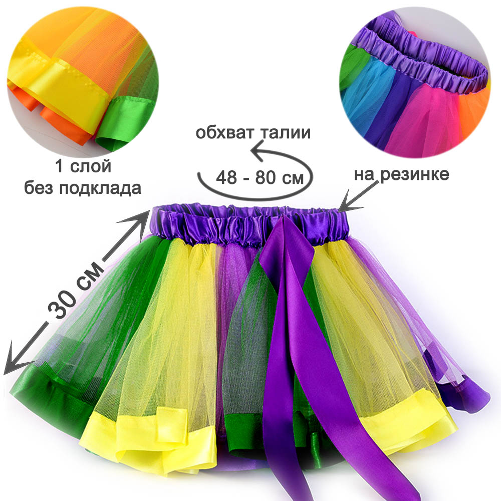 Юбка-пачка детская 30 см зеленый+лимонный+фиолетовый №15