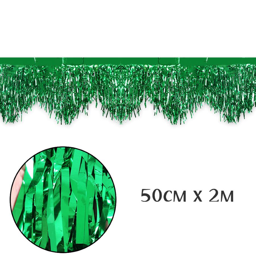 Добавьте яркости и блеска вашему празднику с декоративным занавесом «Дождик»! Сияющий зелёный металлик отражает свет и создаёт эффект мерцающего водопада — отлично для оформления фотозон, сцен и праздничных интерьеров.
