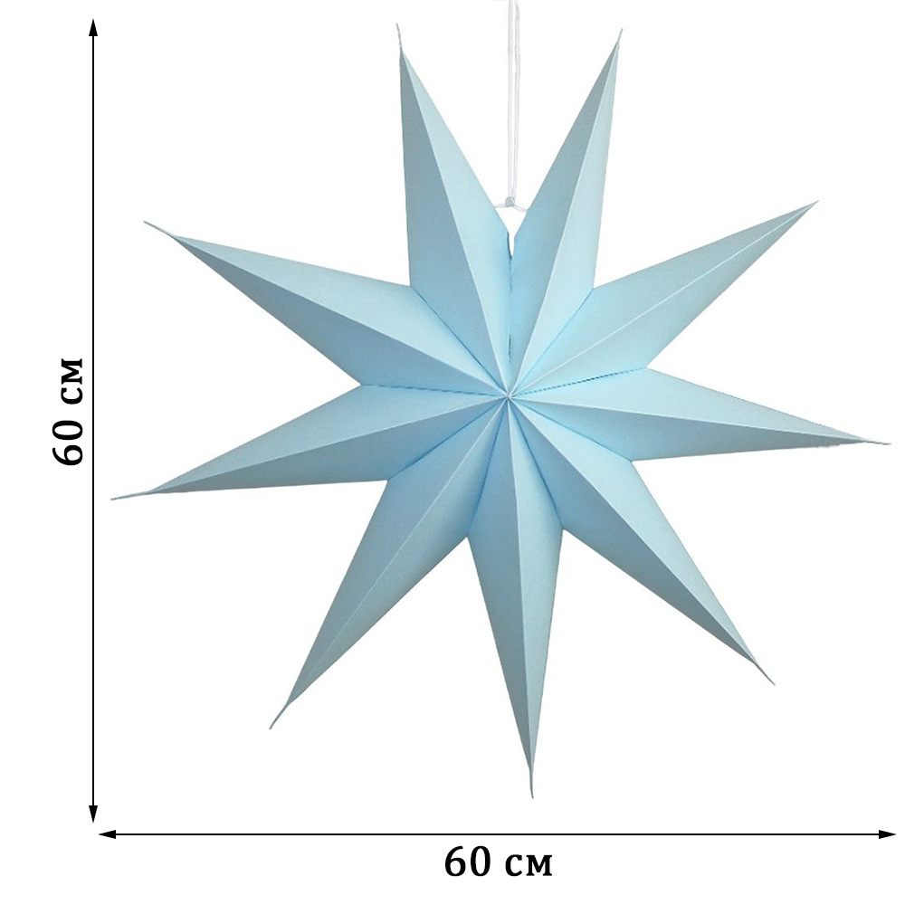Объёмная девятиконечная звезда 60 см — декоративный элемент для интерьера и праздничного оформления. Лёгкая интерьерная звезда из картона хорошо держит форму и создаёт выразительный объём. Поставляется в сложенном виде, в комплекте шнур для фиксации объёма и подвеса.