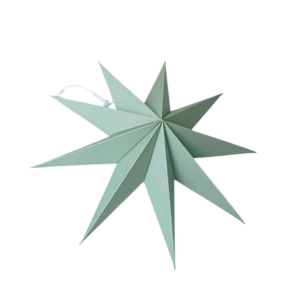 Звезда девятиконечная выполнена в фисташковом цвете из картона.