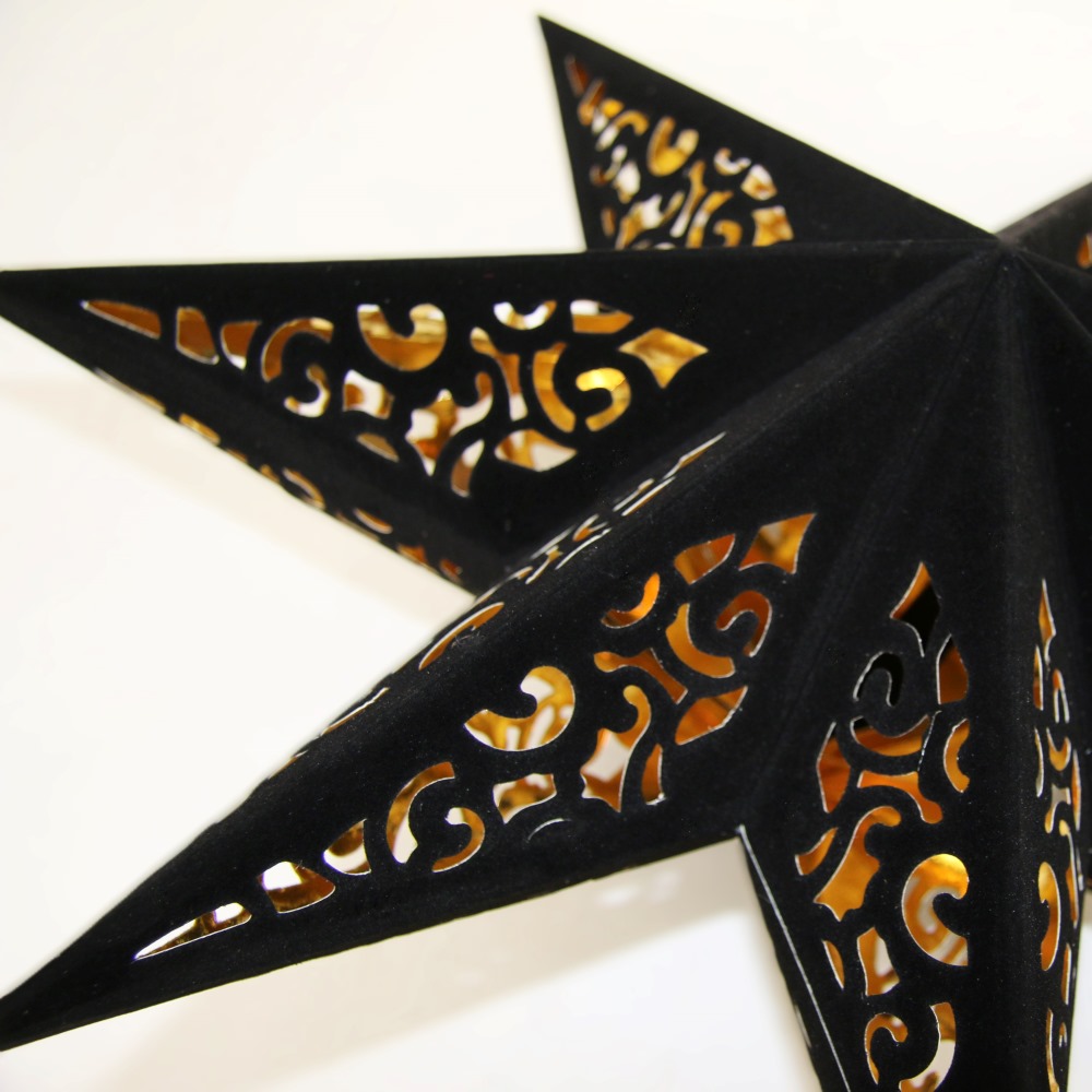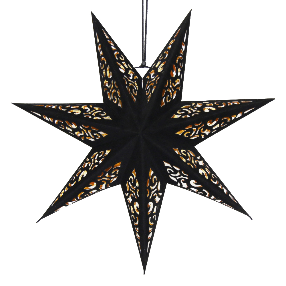 Звезда семиконечная из бархатной бумаги 45 см, Вензель, черный+золото